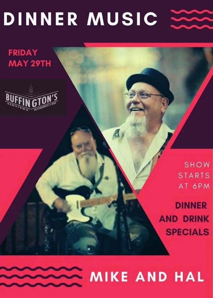 Big Mike and Hal will be playing dinner music Friday 6-9 .We hope to see you in The Buff!
