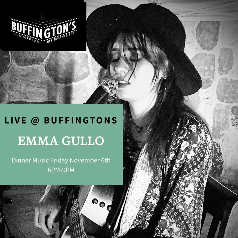 Emma Gullo will be playing dinner music Friday evening at Buffingtons. Emma Gullo is a budding singer/songwriter/performer. She has played on small and big stages as well on the corners of Nashville. Enjoy her music and have a great dinner at Buffingtons.