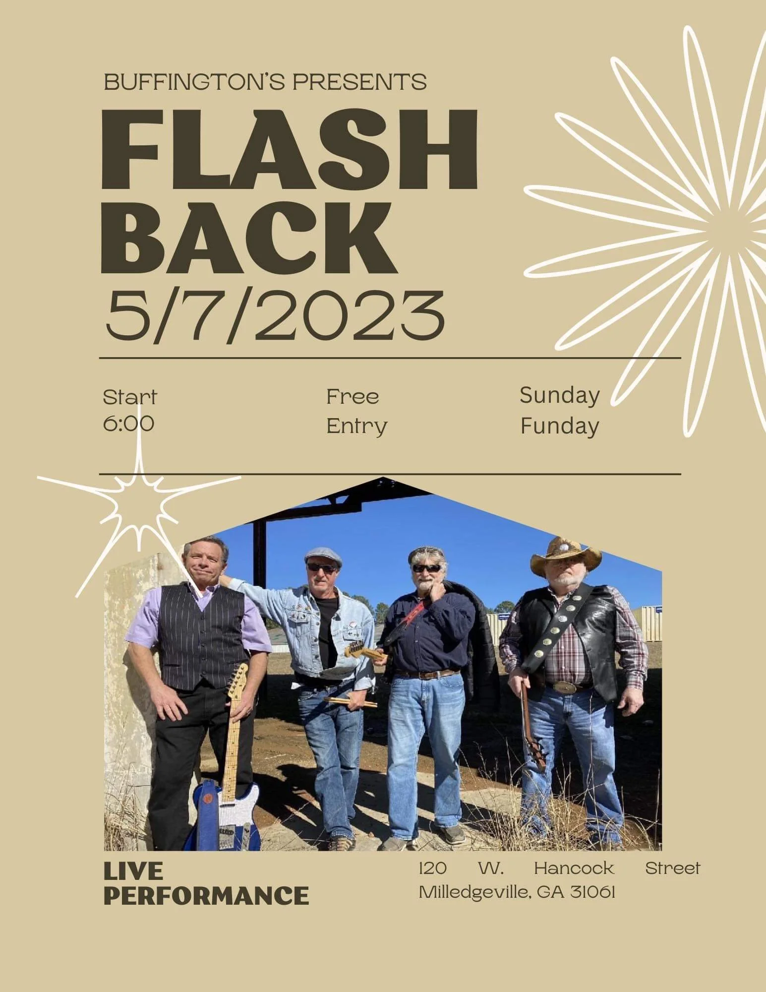 Buffington’s Sunday Funday features a live performance by Flash Back on July 23rd from 6-9pm!