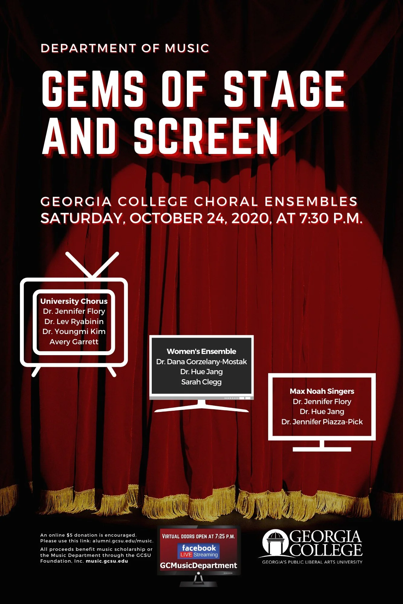 Gems of Stage and Screen: Dr. Jennifer Flory, coordinator - This concert will be virtual: facebook.com/GCMusicDepartment