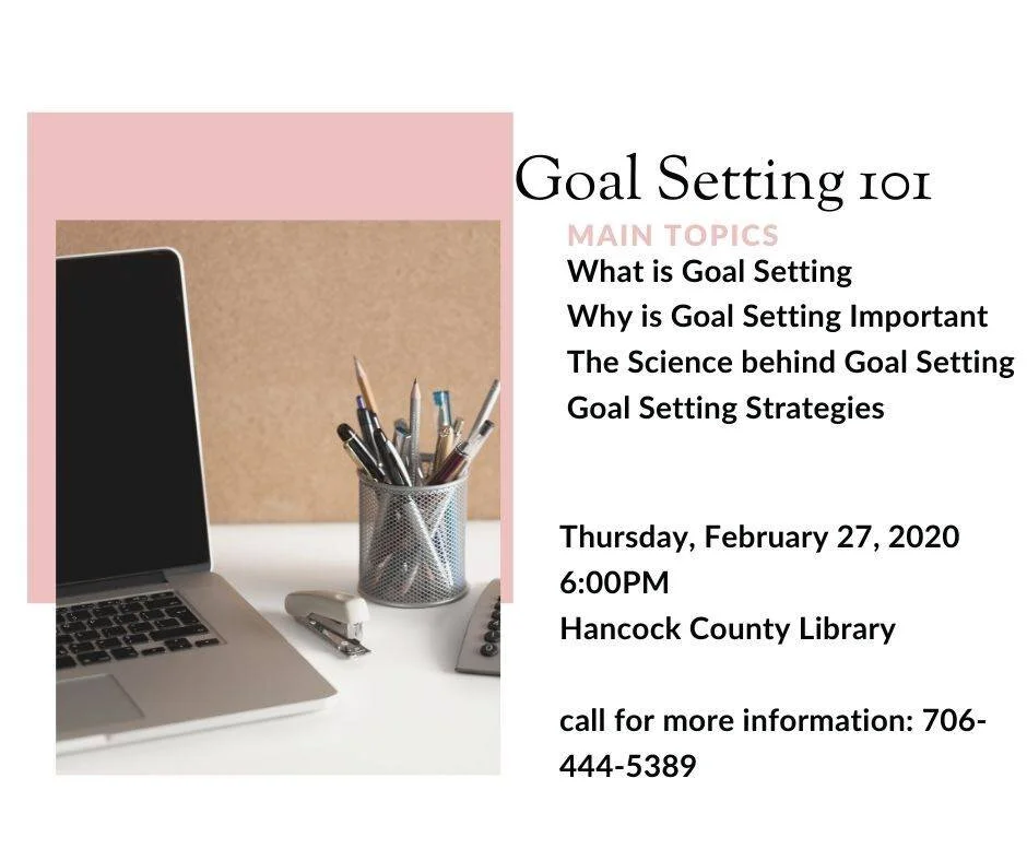 The first in a series of workshops to help you achieve your goals in 2020. Goal Setting 101. You will learn what is goal setting, why is it important, the science behind goal setting and strategies. If you have any questions call Hancock County Library at 706-444-5389