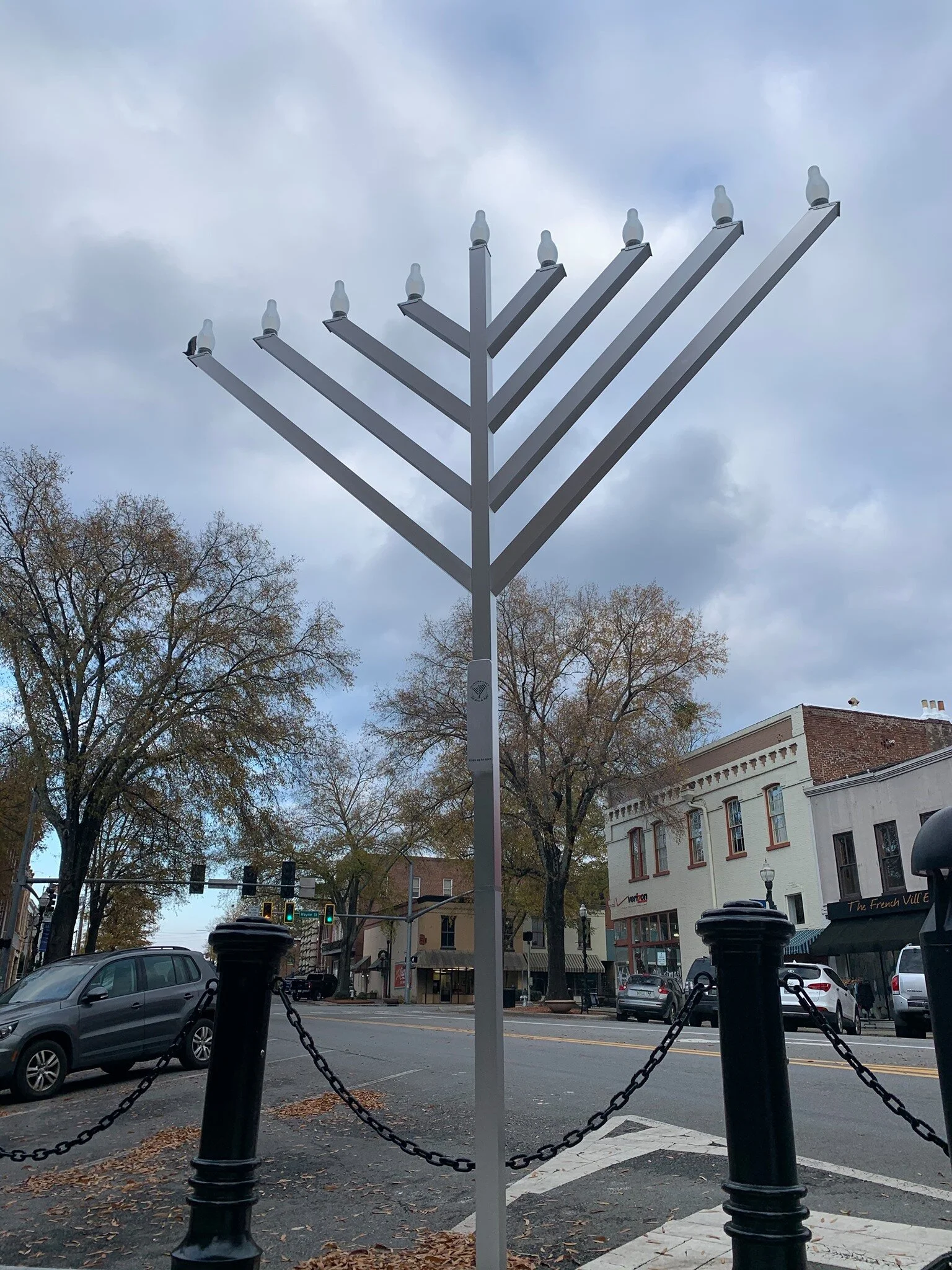 Milledgeville resident, Allison Bloodworth spearheaded the fundraising effort to purchase and place a nine-foot Menorah downtown on the Hancock Plaza. In an effort to move toward tolerance and diversity, this placement is extremely meaningful for the Jewish Community and our community as a whole. This is not a common occurrence in our state nor country. Supporting this new tradition is an amazing opportunity to strengthen our community and show acceptance of all people.