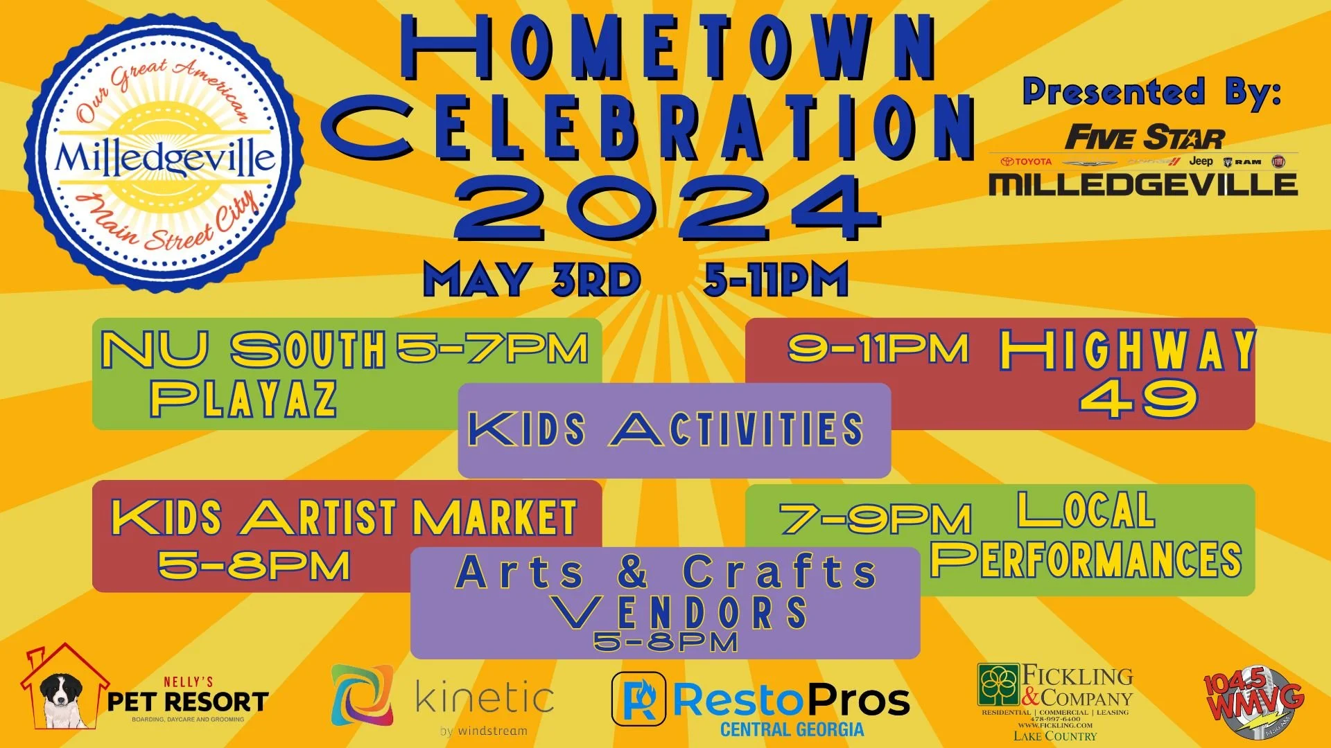 Milledgeville Main Street is thrilled to announce the much-anticipated Hometown Celebration event, set to take place on May 3rd, from 5:00 PM to 11:00 PM, in the heart of Downtown Milledgeville.