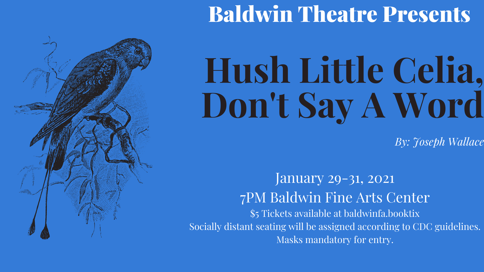 Baldwin Theatre presents their One Act Competition Piece called “Hush Little Celia, Don’t Say A Word” by Joseph Wallace.