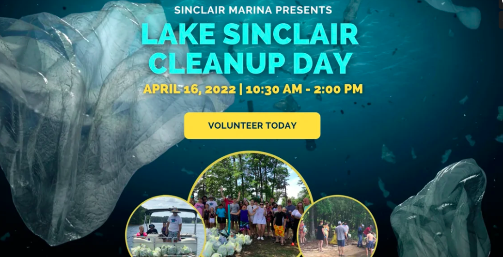 Sinclair Marina is kicking off the boating season by cleaning up our beautiful Lake Sinclair on Saturday, April 16! BYOB (bring your own boat) and join the community to help collect the trash that is polluting Lake Sinclair. Boats will be traveling towards the Lake Sinclair Dam and stopping at various islands along the way. The Grill at Crooked Creek Marina will be offering a special $10 lunch for all participants. Again, you will need to either bring your boat to participate or team up with someone else who has a boat available. Check out the schedule below: