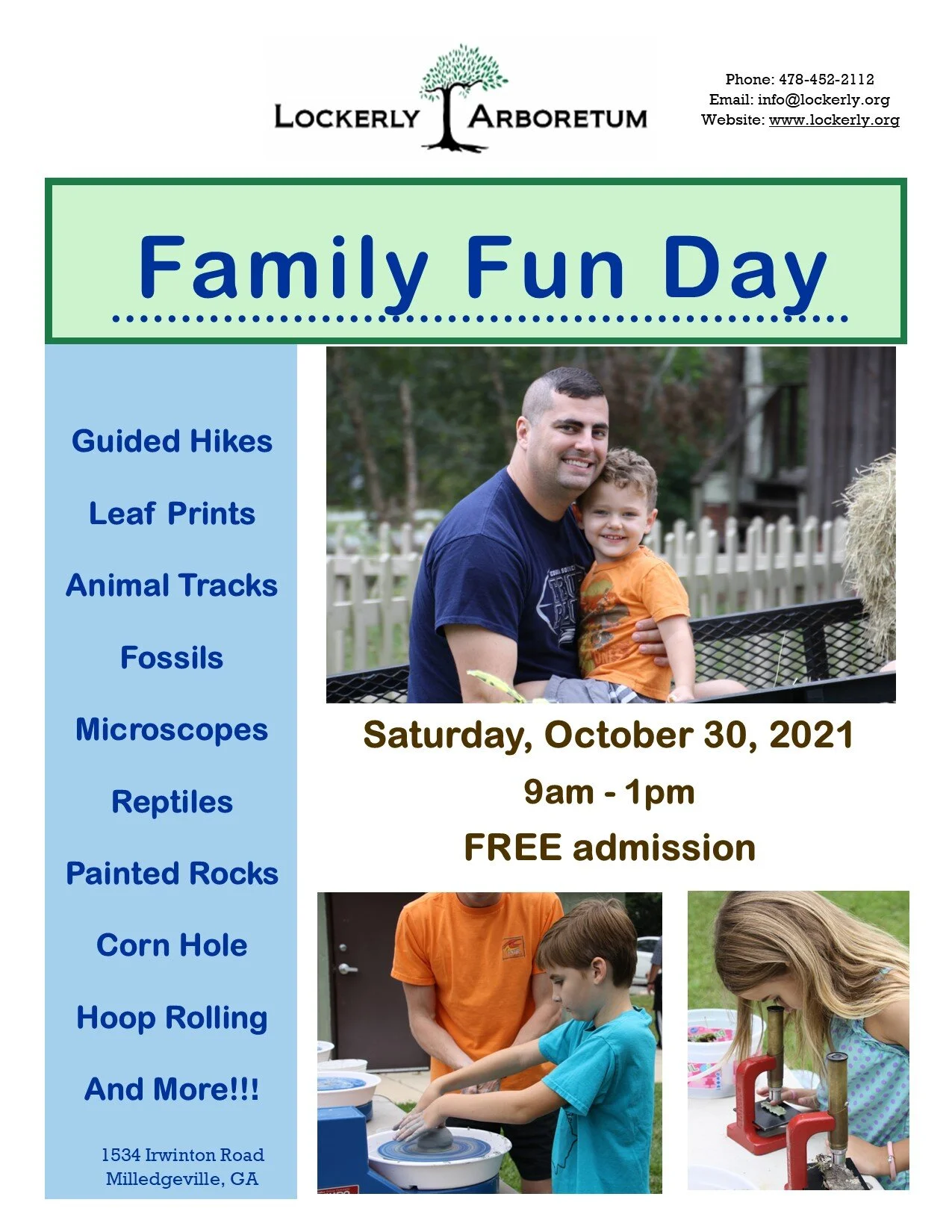 Back to All Events Family Fun Day // Lockerly Arboretum Saturday, October 30, 2021 9:00 AM 1:00 PM Lockerly Arboretum 1534 Irwinton Road Milledgeville, GA, 31061 United States (map) Google Calendar ICS