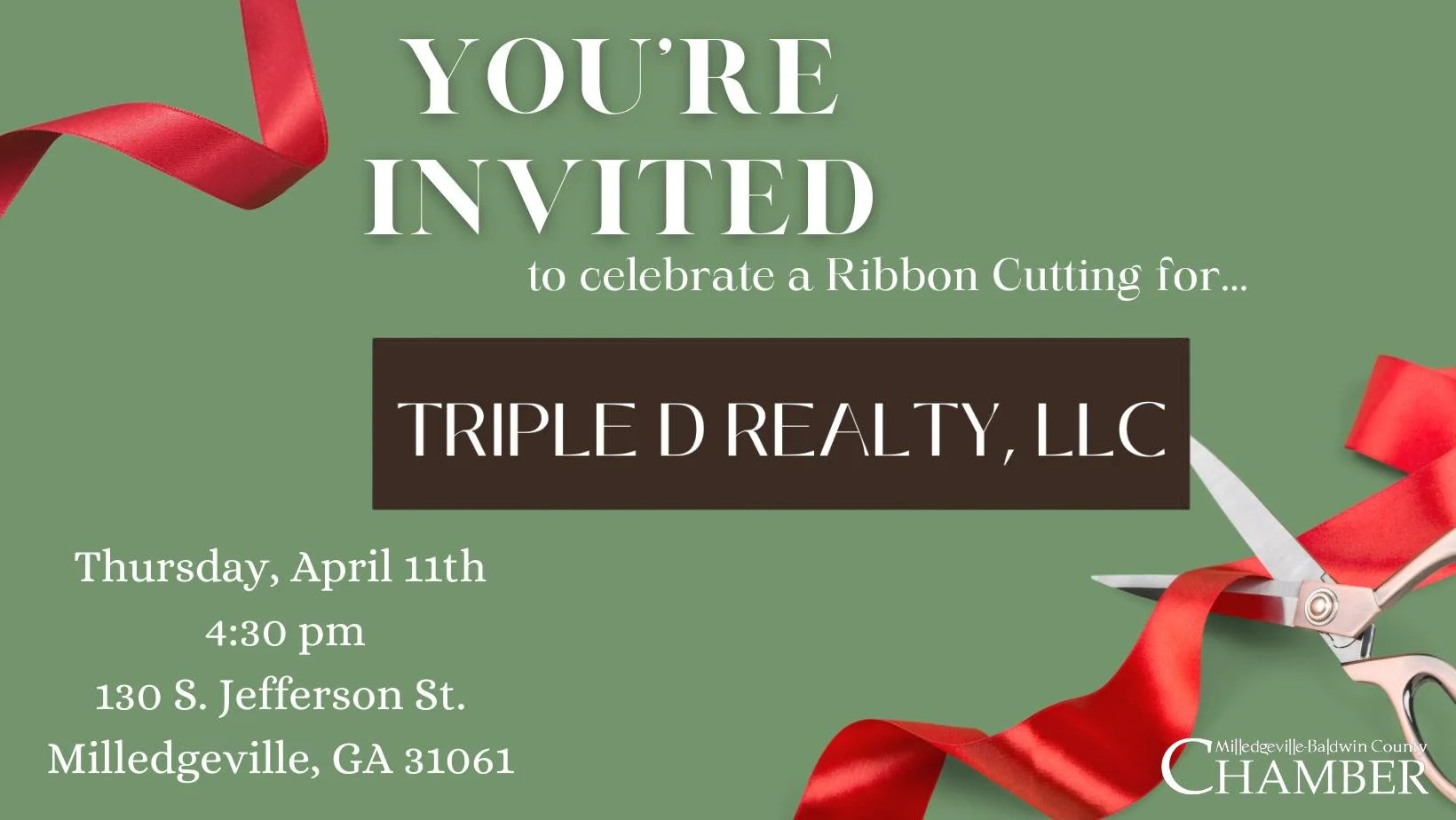 Join the Milledgeville-Baldwin Chamber of Commerce for a Ribbon Cutting Ceremony to celebrate Triple D Realty!