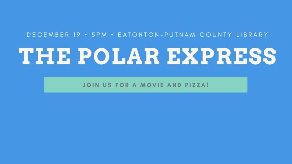 Movie and Pizza at Eatonton-Putnam County Library Thursday, December 19, 2019 5:00 PM 7:00 PM Eatonton-Putnam County Library 309 North Madison Avenue Eatonton, GA, 31024 United States (map) Google Calendar ICS Join the Eatonton-Putnam County Library for The Polar Express with Pizza! Wear your favorite pajamas, and bring your own blanket and pillow! A great day for the kids to have fun!!https://www.facebook.com/events/490320071831946/