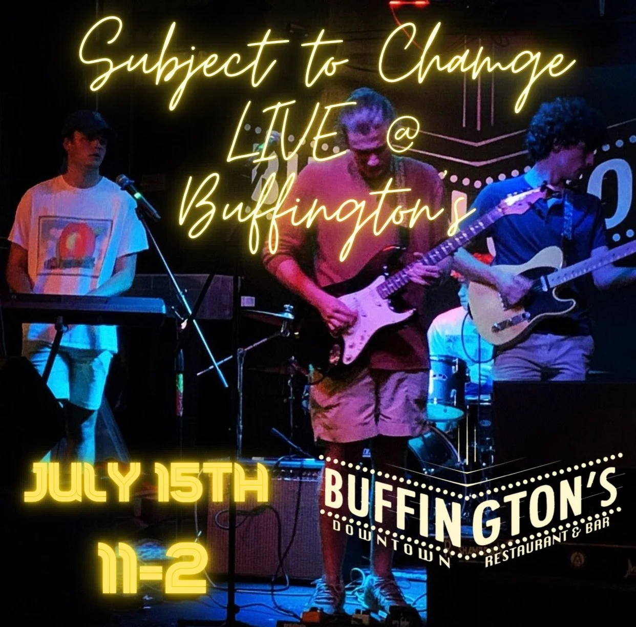 Head to Buffington’s for some late night fun! Live music by Subject To Change on July 15th starting at 11pm!