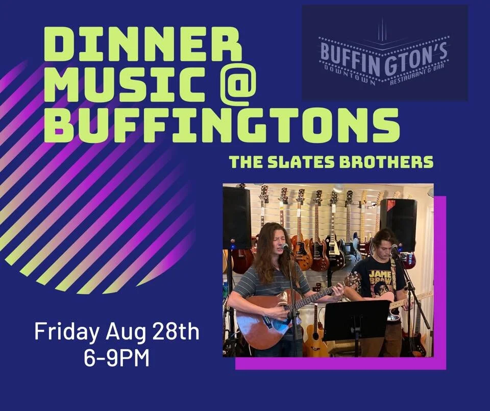 Visit Buffingtons Friday for awesome food and a great band. Classic rock, Southern rock, country, reggae, jazz and the blues by The Slates Brothers.