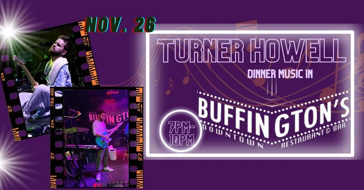 Turner Howell Dinner Music // Buffington's Friday, November 26, 2021 7:00 PM 10:00 PM Buffington's 120 West Hancock Street Milledgeville, GA, 31061 United States (map) Google Calendar ICS