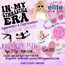 Join Elite Gym USA for a Taylor Swift Themed Gymnastics and Cheernastics Camp from June 10th-13th!